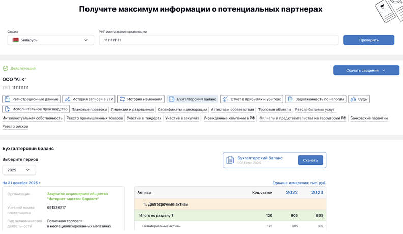 Возможность подключения модулей проверки компаний Республики Беларусь, Российской Федерации, Казахстана -